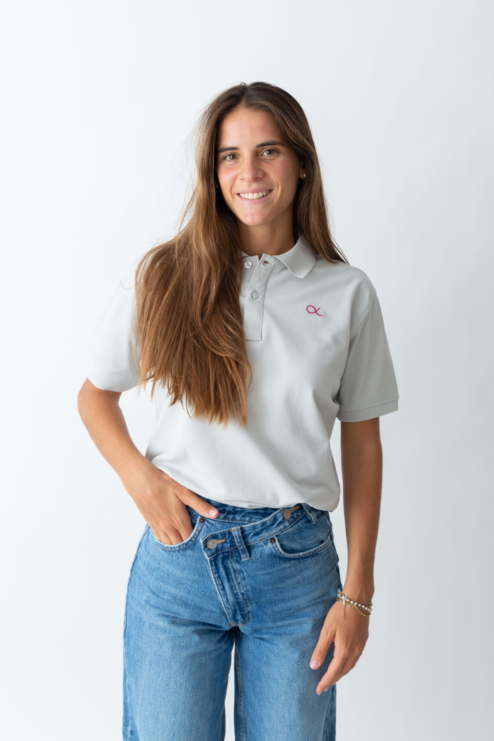 El logo bordado en hilo.