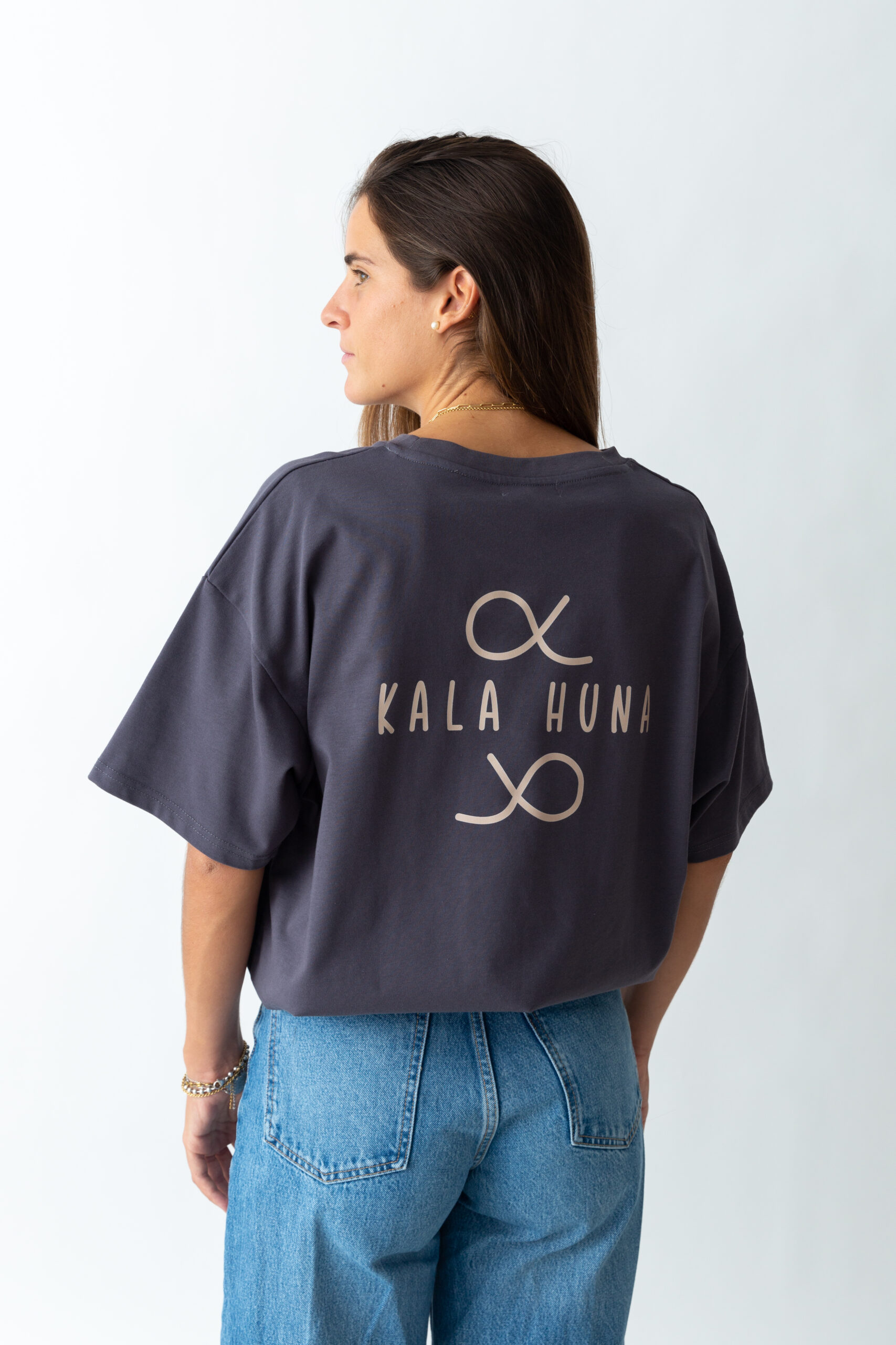 Camiseta oversize, manga corta, cuello redondo.